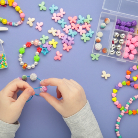Gelang DIY warna-warni ini cocok untuk kamu yang suka berkreasi dan ingin tampil beda. Dengan bahan manik-manik warna-warni dan tali elastis, kamu bisa membuat gelang sesuai selera dan gaya sendiri. Cocok untuk anak-anak, remaja, hingga dewasa yang menyukai aktivitas kreatif dan hasil buatan tangan.